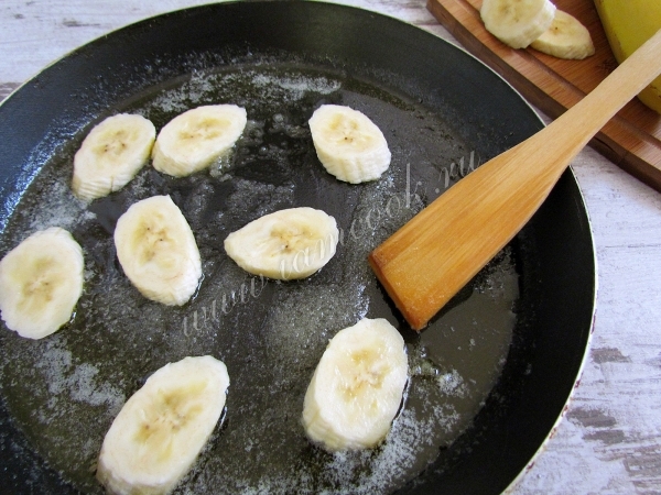 Перемешайте, дождитесь полного растворения сахара. Выложите бананы и готовьте около минуты с каждой стороны.
