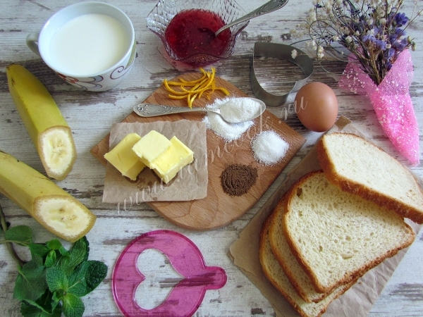Приготовьте необходимые продукты. Хлеб для тостов лучше использовать слегка зачерствелый, свежий хлеб быстро размокнет в молоке и тосты не получатся.