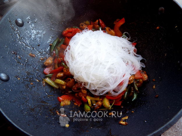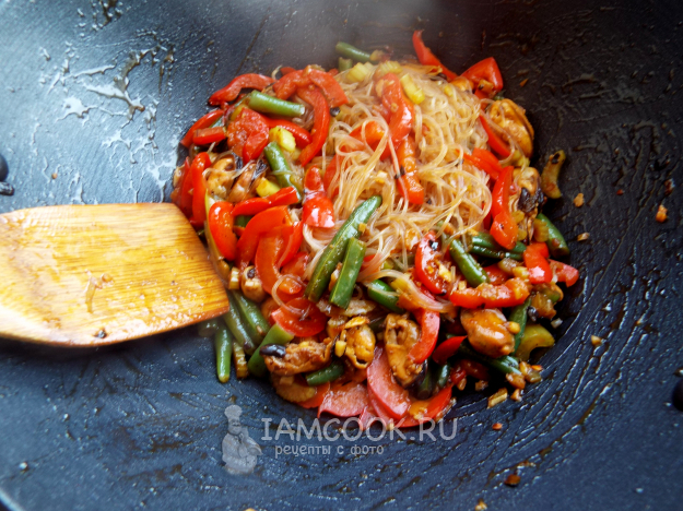 Добавить фунчозу. Тщательно размешать.