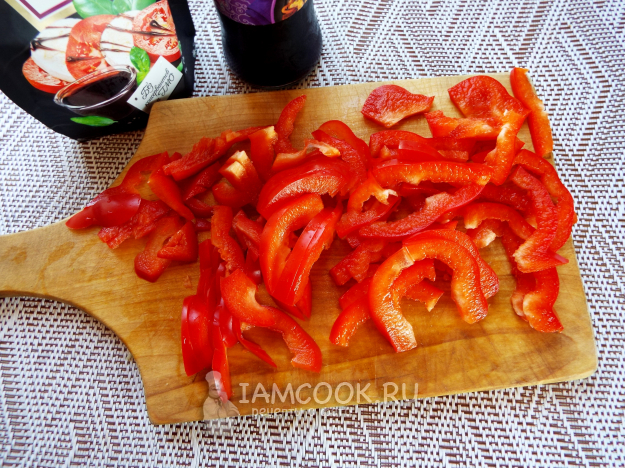 Перец нарезать полосками.