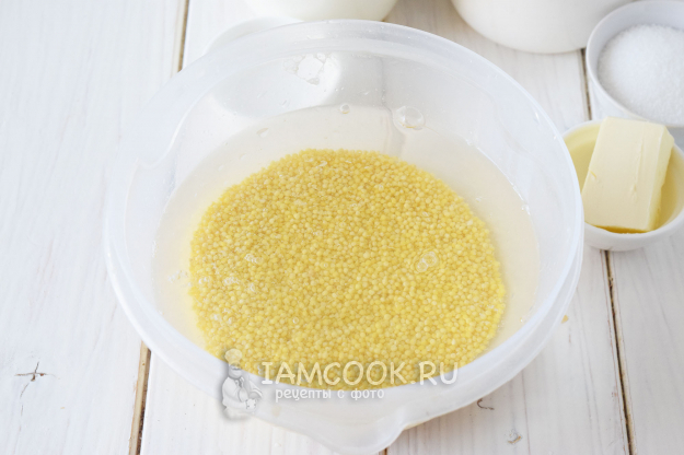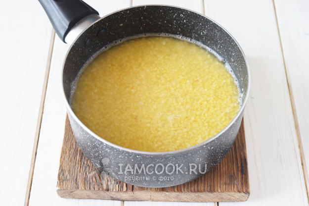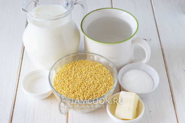 Приготовим очень вкусную молочную пшенную кашу. Количество ингредиентов в рецептуре указано в таких пропорциях, чтобы в итоге у нас получилась каша, вязкая по консистенции. Надо помнить, что в вязкой каше зерна пшена получаются хорошо набухшими и разваренными, но в то же время, они между собой слипшиеся, что и отличает вязкую кашу от каши рассыпчатой. Такая каша будет держаться горкой и не будет расползаться на тарелке.