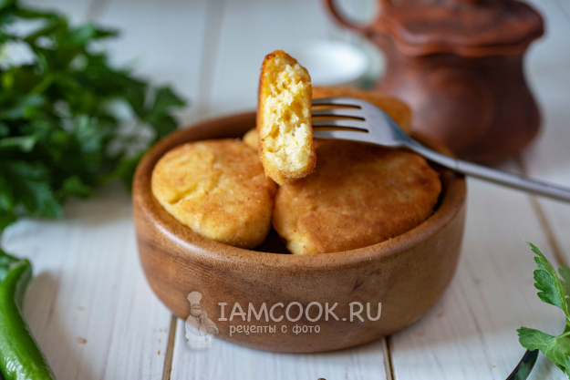 Готовые котлеты из кукурузной каши сначала выложим на бумажное полотенце, удаляя излишки масла, затем переложим на тарелку. Котлеты подаем к любому гарниру.