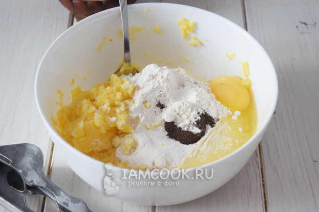 Добавим соль, молотый перец, выдавим через пресс чеснок.