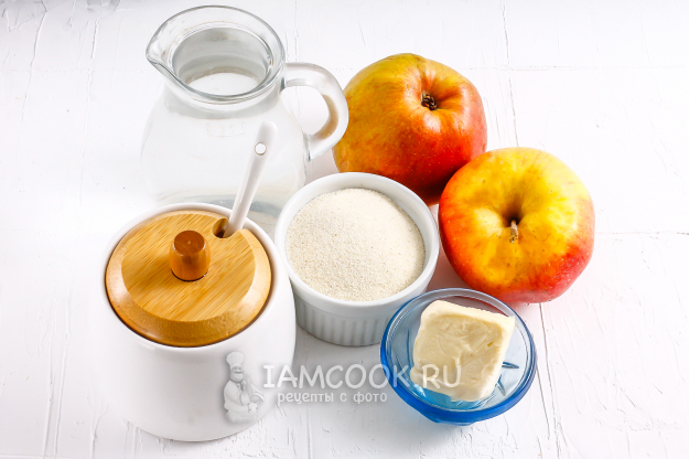 Подготовьте необходимые ингредиенты для создания сытной манной каши с яблоками.