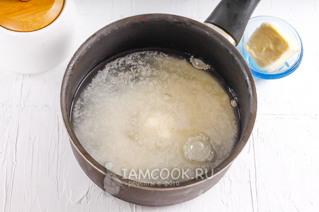 Вскипятите воду в казане или ковше с антипригарным дном. Всыпьте в нее соль. Тонкой струйкой всыпьте манную крупу, сразу же перемешивая содержимое емкости венчиком или силиконовой, деревянной лопаткой, чтобы исключить образование комочков. Убавьте нагрев до умеренного или среднего и отварите кашу 5-8 минут, не забывая помешивать.