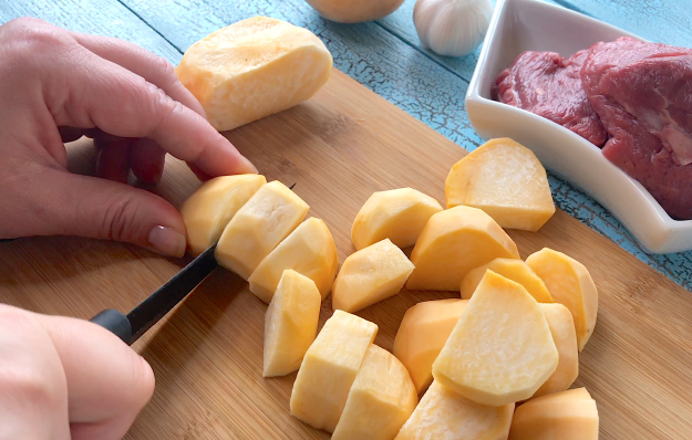 Для начала подготовила все нужные продукты для приготовления репы с мясом в горшочке в духовке.