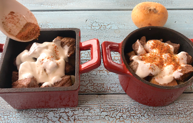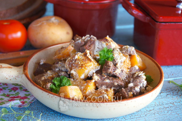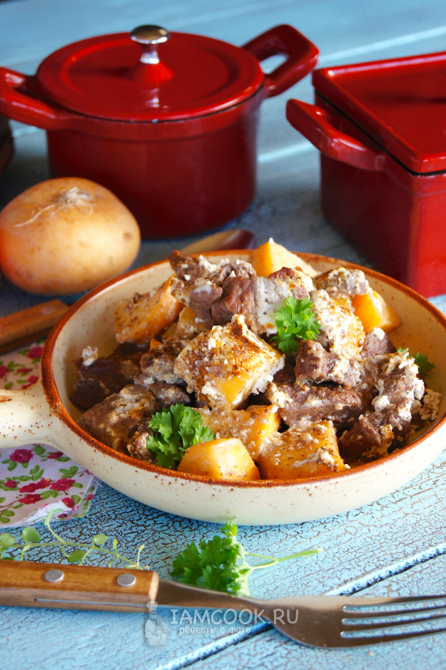 Сверху полила сметаной и посыпала специями. Закрыла крышками, поставила репу с мясом в горшочках в разогретую до 180-190 градусов духовку минут на 40-50.