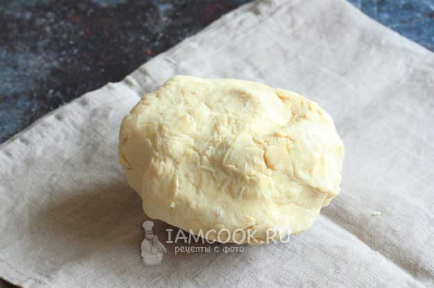 Соберите тесто в комок, не стараясь вымесить его до гладкости. Накройте тесто пленкой и положите в холодильник.