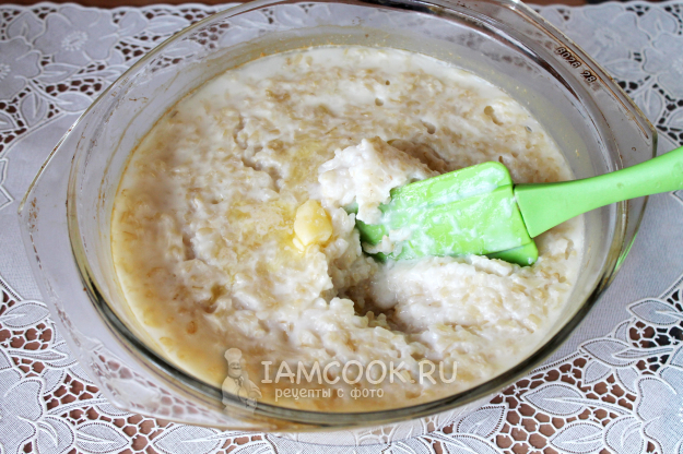 В кашу добавьте топленое масло по вкусу, или добавьте масло прямо в тарелки.
