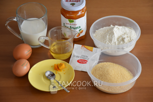Для приготовления заливного пирога с джемом необходимо подготовить следующие ингредиенты.