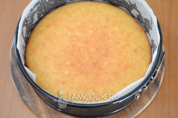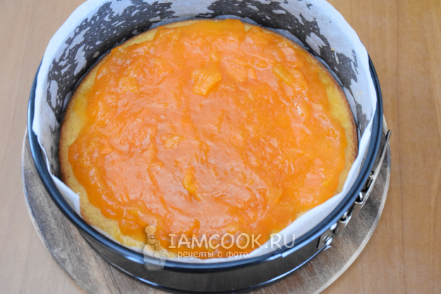 Вынуть корж из духовки и выложить сверху джем, немного отступая от края.