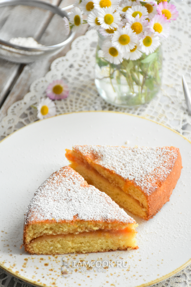А вот так заливной пирог с джемом выглядит в разрезе.
