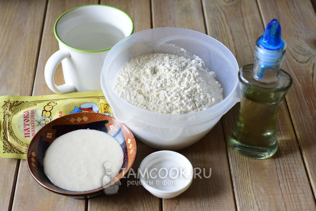 Приготовим опару. В миску зальем воду и разведем в ней пшеничную закваску.