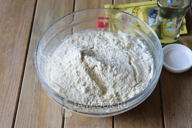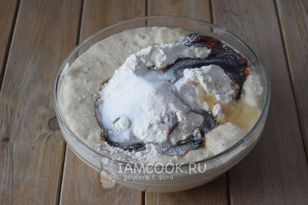 Хорошо размешаем до получения однородной смеси. Миску с опарой затянем пищевой пленкой и оставим в комнатных условиях на 12-14 часов.