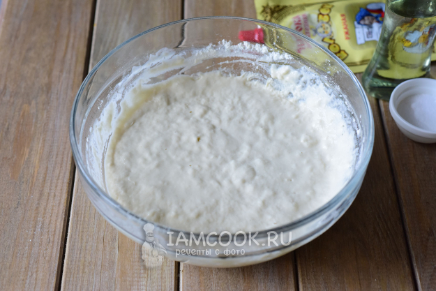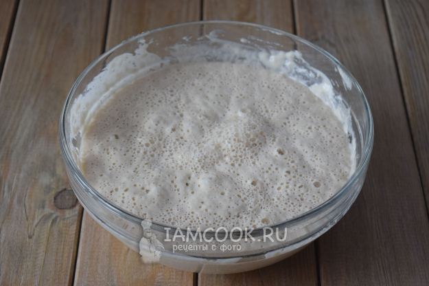 Я оставила на ночь, и утром у меня опара выглядела так, то есть она приобрела пузырчатую структуру и заметно поднялась.