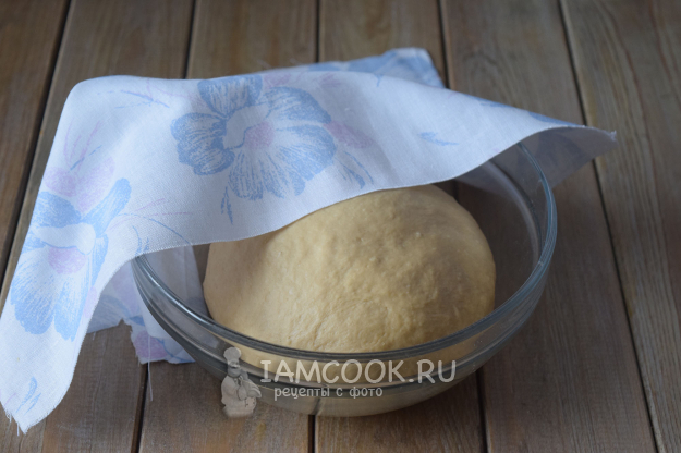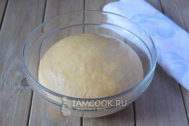 Замесим руками очень мягкое, очень приятное в работе тесто. Замешиваем минут пятнадцать. Тесто округлим в миске, миску накроем полотенцем, оставим в комнатных условиях на 2 часа.