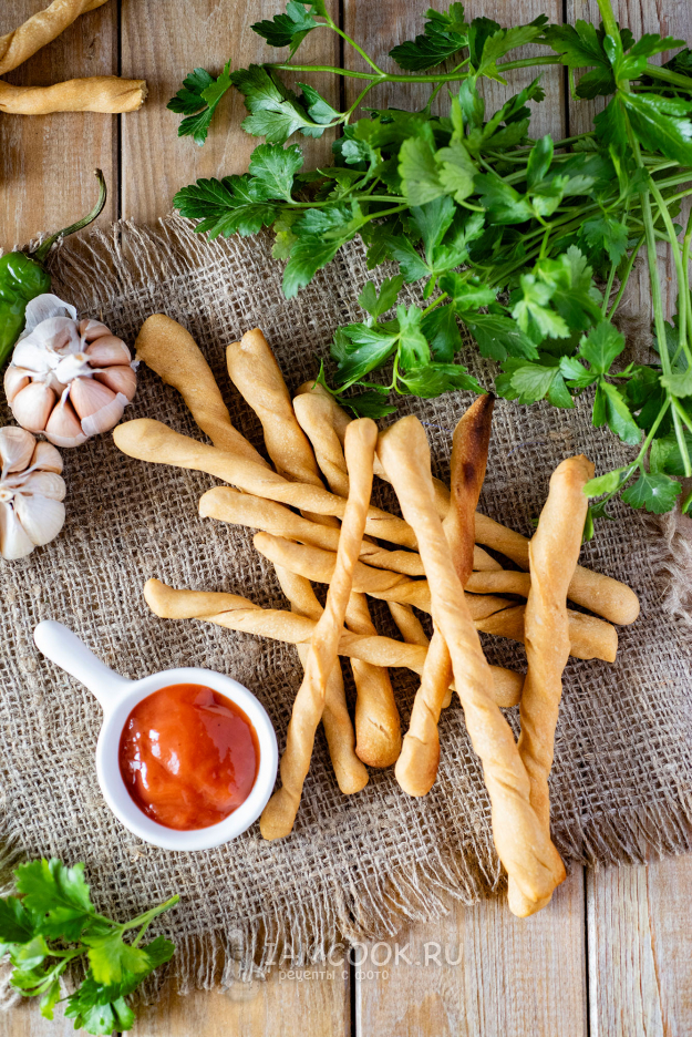 Аппетитные, подрумяненные, хрустящие хлебные палочки гриссини на закваске готовы. Начинаем сразу пробовать. Приятного аппетита!
