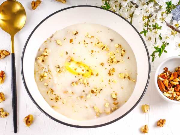 Затем разложите кашу по формам. Я использовала керамические салатники. Оставьте кашу полностью остыть.