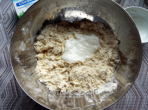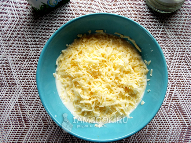 Яйцо соединить со сливками. Подсолить. Всыпать 2/3 сыра.