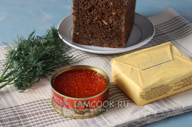 Для приготовления бутербродов с красной икрой на чёрном хлебе подготовить из списка необходимые ингредиенты. Сливочное масло достать заранее из холодильника, чтоб оно стало мягким.
