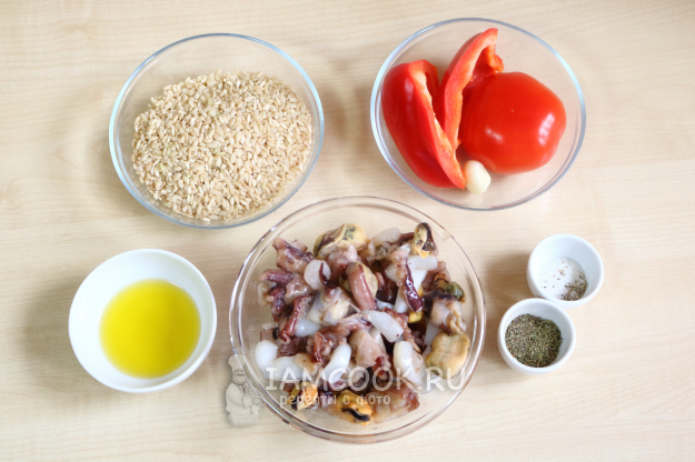Сегодня готовим бурый рис с морепродуктами на 3 персоны. Приступим!