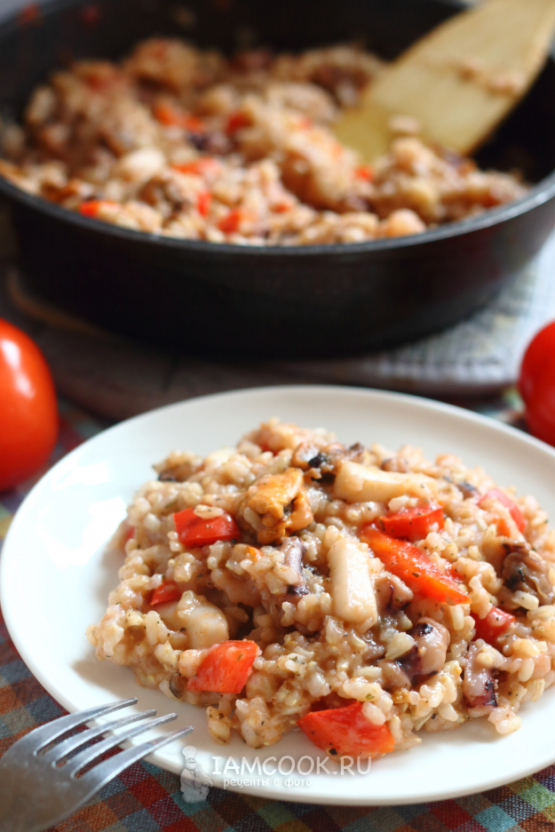 Бурый рис с морепродуктами готов! Приятного аппетита!