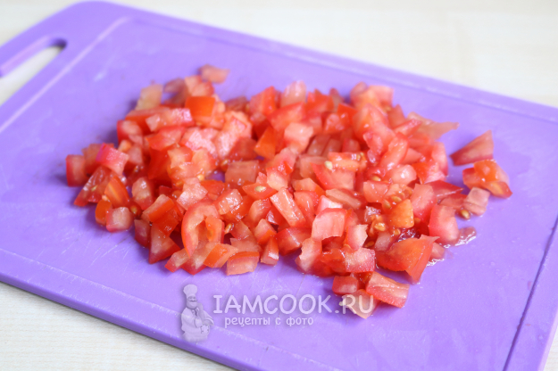 Так же поступите с помидором. Его можно нарезать мельче, а можно и вовсе измельчить в блендере до пюре.