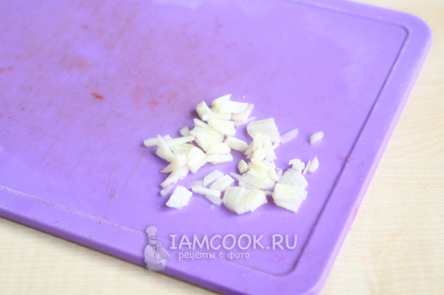 Чеснок очистите и мелко нарежьте либо воспользуйтесь специальным прессом.