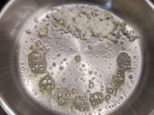 Обжарьте мелко нарезанный лук до мягкости на оставшемся сливочном масле.
