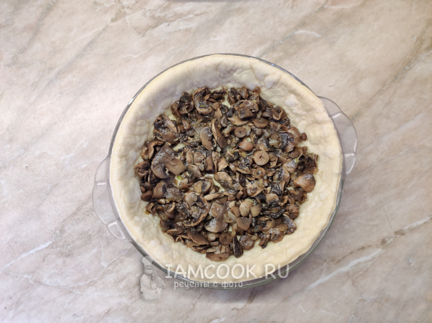 Распределите слегка остывшие грибы по форме.