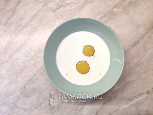 В глубокой миске венчиком взбейте яйца и сливки вместе с солью и перцем.