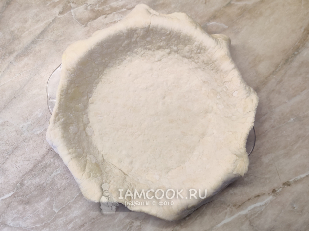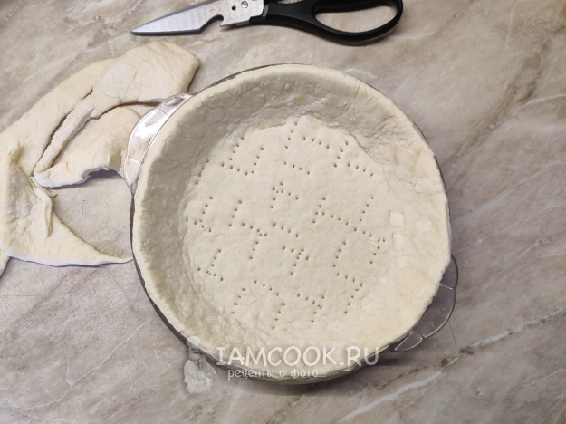Кулинарными ножницами подровняйте тесто по краю, а дно наколите вилкой.