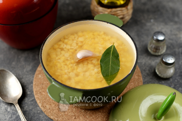 Влейте горячую воду из чайника, воды должно быть на 1,5-2 сантиметра выше гороха, независимо от емкости горшочка, посолите и поперчите по вкусу, положите лавровый лист и зубчик чеснока. Накройте крышкой, отправьте горох с мясом в горшочке в духовку, предварительно разогретую до 190 градусов, на 1,5 часа без конвекции. Обязательно поставьте под горшочки противень.