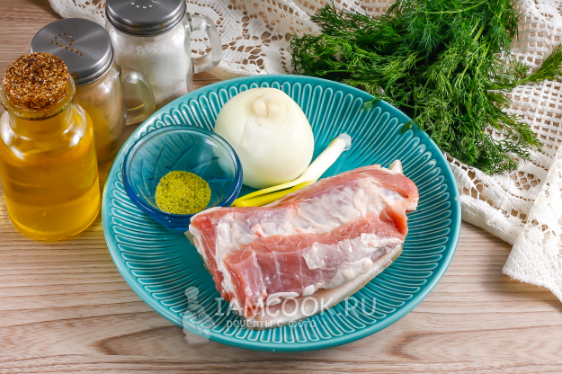 Возьмите необходимые ингредиенты для приготовления мяса в горшочке в микроволновке.
