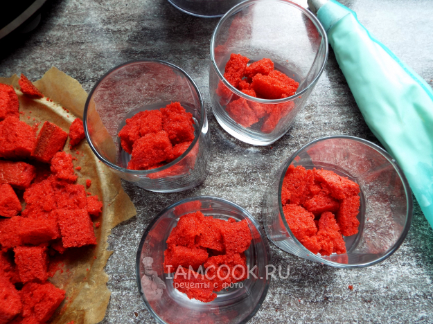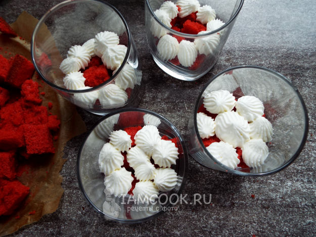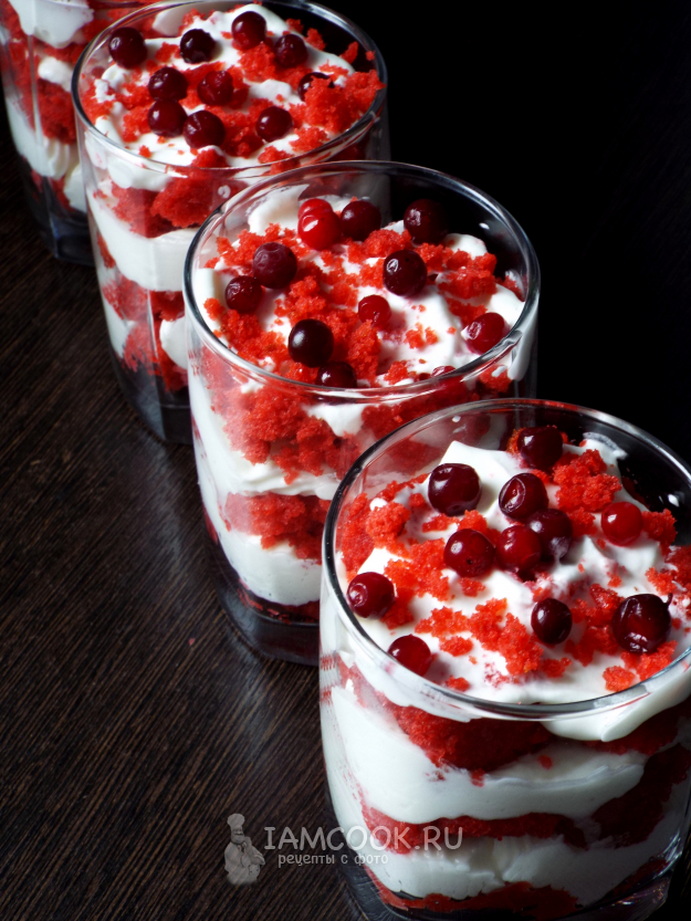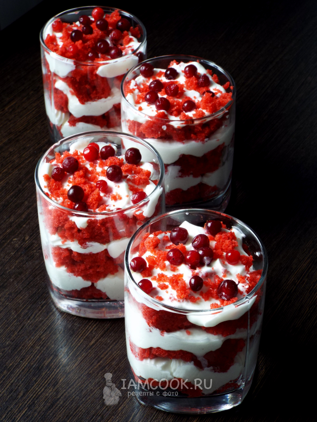Трайфлы «Красный бархат» готовы к подаче на стол.