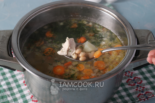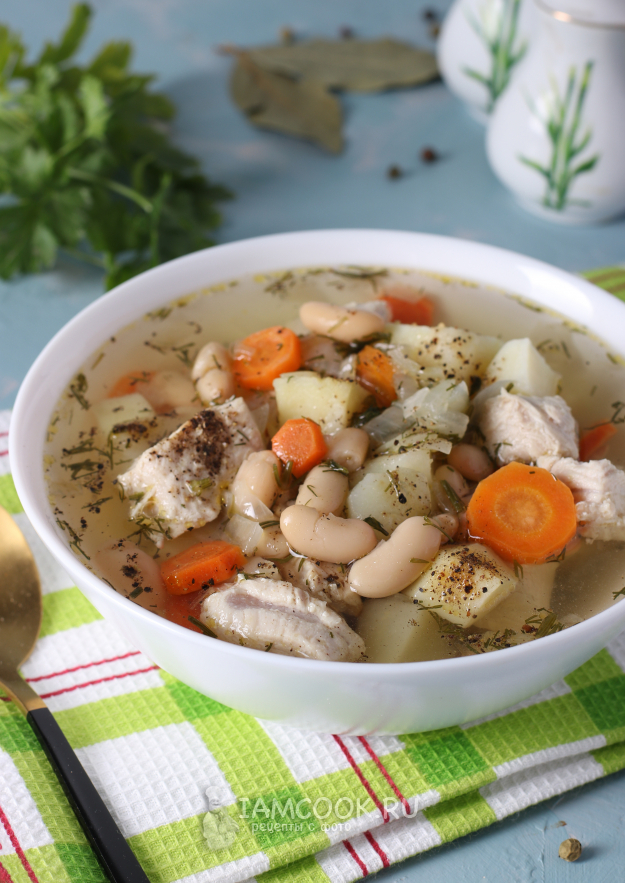Суп из индейки с консервированной фасолью готов. Можно сразу подавать к столу.