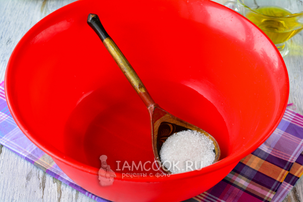 В теплую воду всыпьте сахар и соль, размешайте до полного растворения кристаллов.
