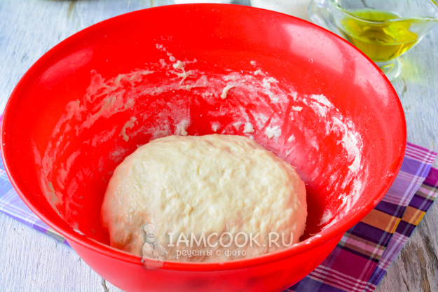 Замесите мягкое тесто и отставьте в сторонку на 35-40 минут, пусть поднимется. Прикройте емкость полотенцем или крышкой.