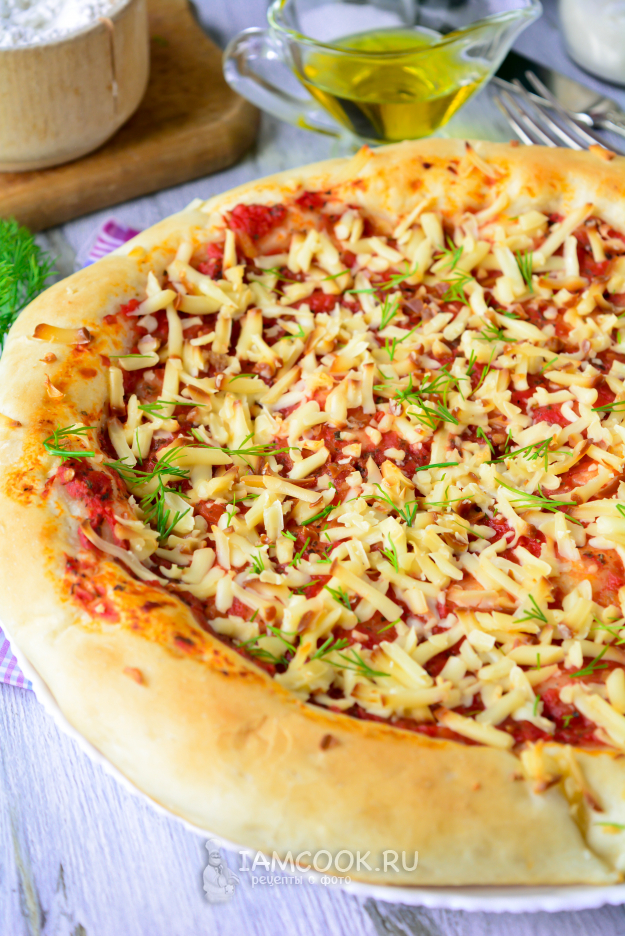 Выпекайте пиццу 20-25 минут при 200°С до румяной корочки.