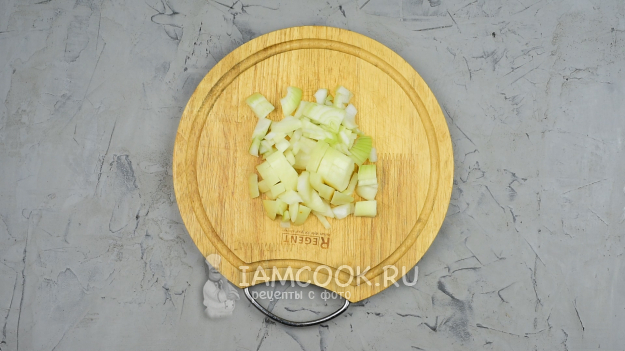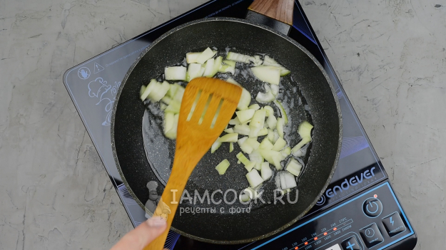 Обжарим измельченный лук в растительном масле на сковороде до мягкости.