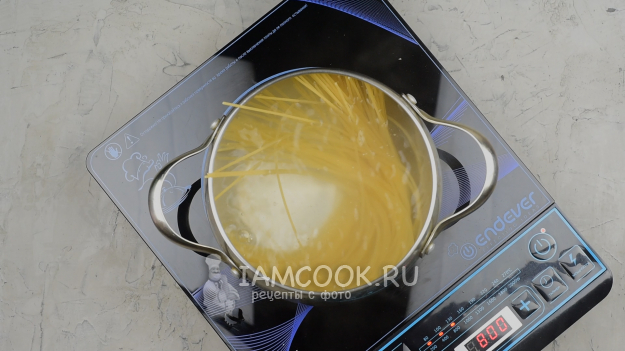 Отварим спагетти или другие макароны в соответствии с инструкцией на упаковке до готовности.