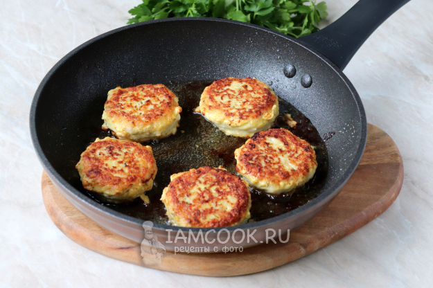 После чего смочите ладони в холодной воде и сформируйте из фарша небольшие котлеты. Выложите их на разогретую с растительным маслом сковороду.