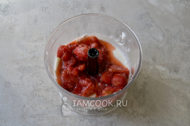 Влейте расплавленный желатин через ситечко в чашу блендера.