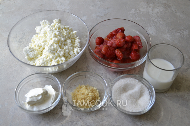 Подготовьте продукты для клубнично-творожного мусса. Замороженную клубнику заранее доставьте из морозильной камеры и дайте ей оттаять. Если у вас свежая ягода, то тщательно промойте ее и обсушите от воды.