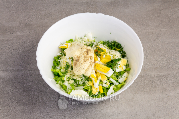 Для приготовления салата из пекинской капусты с сыром и яйцом понадобятся следующие компоненты.