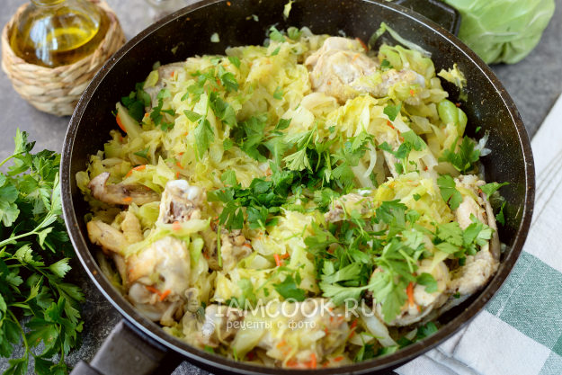 Мягкая, вкусная и полезная тушеная капуста с куриными крылышками готова. Разложите по порционным тарелкам и зовите родных к обеденному столу. Блюдо смело можно подать как самостоятельное, хотя с рисом, гречкой и картошкой оно отлично сочетается.