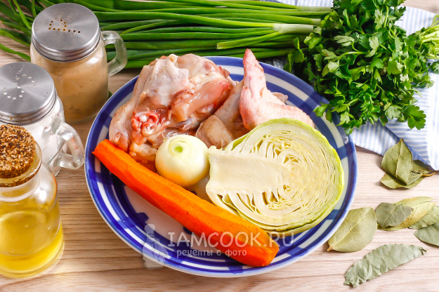 Подготовьте необходимые ингредиенты для создания аппетитных ПП щей из свежей капусты с курицей.