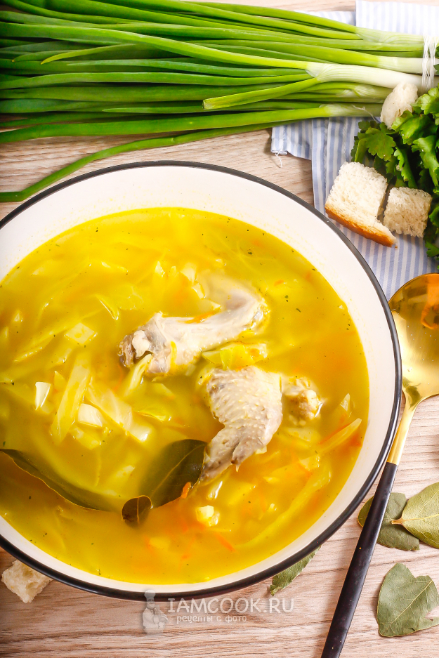 Выложите ПП щи из свежей капусты с курицей в глубокие тарелки, подайте к столу со сметаной низкой жирности или постным майонезом, сухариками или хлебцами.