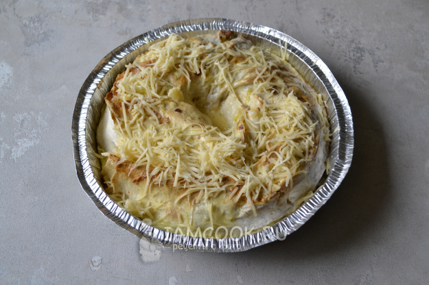 Посыпьте сверху натертым сыром и вновь верните его в духовку.