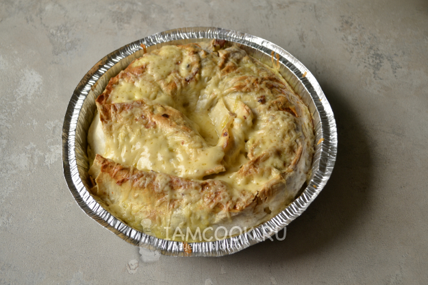 Нежное тесто, мягкая сочная начинка и корочка из сыра - очень вкусно! Приятного аппетита!